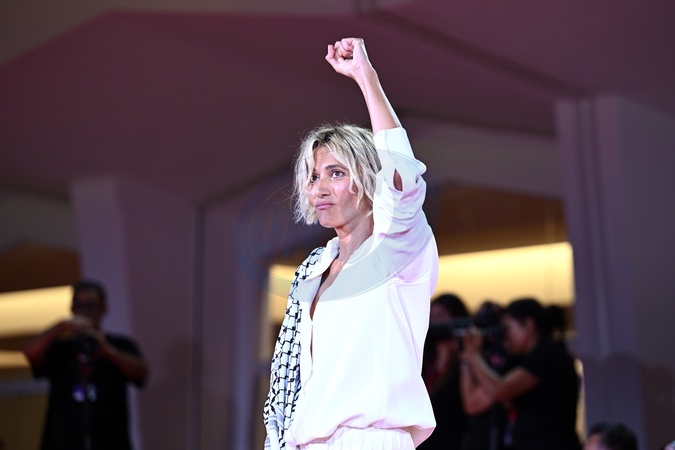 04/09/2025 Biennale di Venezia, 82 Mostra Internazionale d' Arte Cinematografica, red carpet del film 'Hateshinaki Scarlet'. Nella foto Anna Foglietta wearing a Palestinian keffiyeh . Venice, Italy 04 September 2025, Credit:Maria Laura Antonelli / Avalon