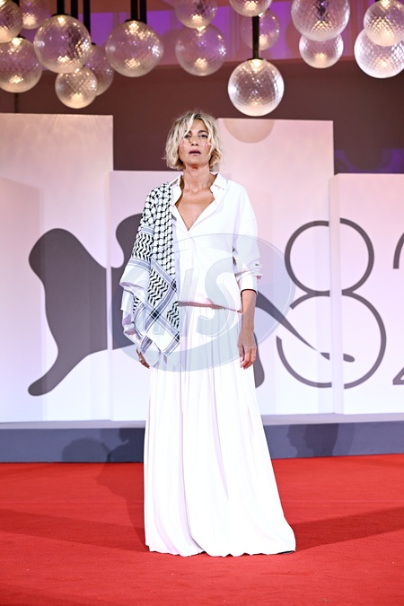 04/09/2025 Biennale di Venezia, 82 Mostra Internazionale d' Arte Cinematografica, red carpet del film 'Hateshinaki Scarlet'. Nella foto Anna Foglietta wearing a Palestinian keffiyeh . Venice, Italy 04 September 2025, Credit:Maria Laura Antonelli / Avalon