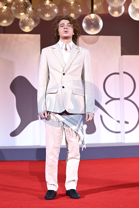 Venice Biennale, 82nd Venice International Film Festival. Red carpet for the film "Il Mostro." In the photo guest with the Palestinian keffiyeh . Venice, Italy 04 September 2025, Credit:Maria Laura Antonelli / Avalon