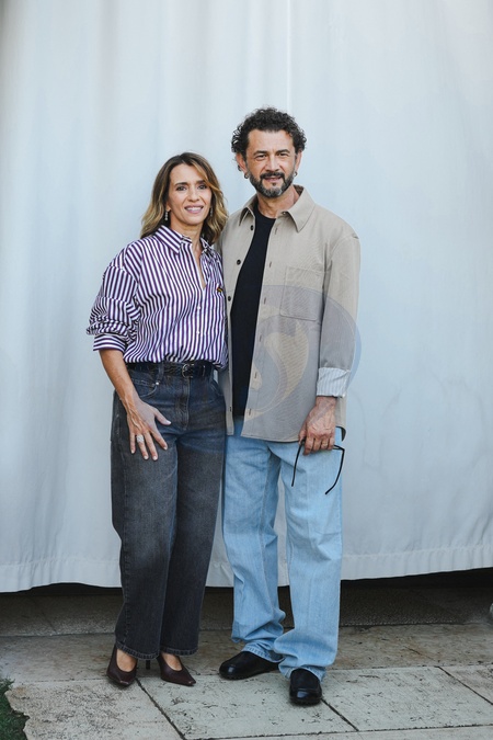 Teresa Saponangelo and Vinicio Marchioni are seen at Hotel Excelsior during the 82nd Venice International Film Festival on September 5, 2025 in Venice, Italy. (Photo by Lucia Sabatelli / Bestimage) EDITORIAL USE ONLY