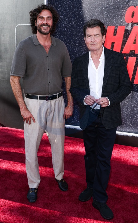 HOLLYWOOD, LOS ANGELES, CALIFORNIA, USA - SEPTEMBER 04: Andrew Renzi and American actor Charlie Sheen arrive at the Los Angeles Premiere Of Netflix's 'aka American actor Charlie Sheen' Season 1 held at the Netflix Tudum Theater on September 4, 2025 in Hollywood, Los Angeles, California, United States., Credit:Xavier Collin / Avalon