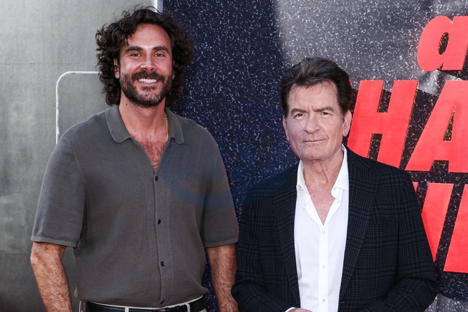 HOLLYWOOD, LOS ANGELES, CALIFORNIA, USA - SEPTEMBER 04: Andrew Renzi and American actor Charlie Sheen arrive at the Los Angeles Premiere Of Netflix's 'aka American actor Charlie Sheen' Season 1 held at the Netflix Tudum Theater on September 4, 2025 in Hollywood, Los Angeles, California, United States., Credit:Xavier Collin / Avalon