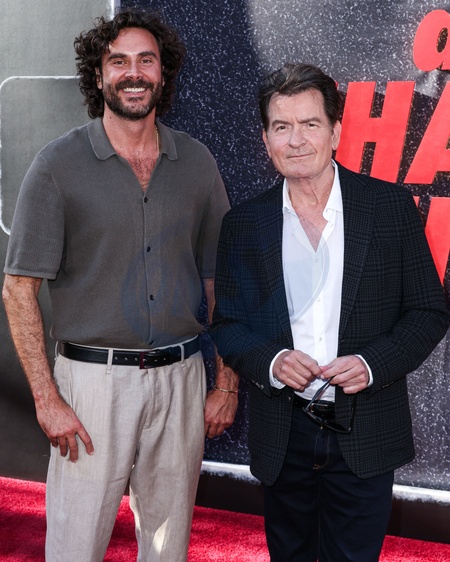 HOLLYWOOD, LOS ANGELES, CALIFORNIA, USA - SEPTEMBER 04: Andrew Renzi and American actor Charlie Sheen arrive at the Los Angeles Premiere Of Netflix's 'aka American actor Charlie Sheen' Season 1 held at the Netflix Tudum Theater on September 4, 2025 in Hollywood, Los Angeles, California, United States., Credit:Xavier Collin / Avalon