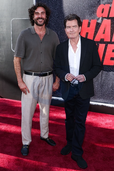 HOLLYWOOD, LOS ANGELES, CALIFORNIA, USA - SEPTEMBER 04: Andrew Renzi and American actor Charlie Sheen arrive at the Los Angeles Premiere Of Netflix's 'aka American actor Charlie Sheen' Season 1 held at the Netflix Tudum Theater on September 4, 2025 in Hollywood, Los Angeles, California, United States., Credit:Xavier Collin / Avalon
