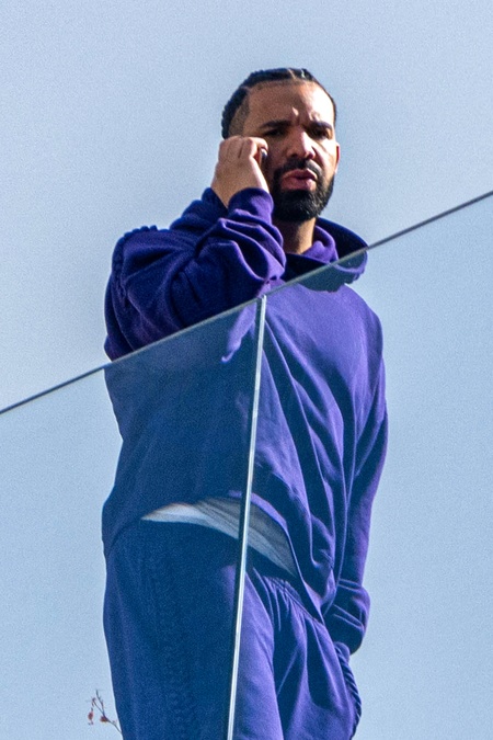 Kanadyjsko-amerykański raper Drake podczas długiej rozmowy telefonicznej na dachu w Paryżu
