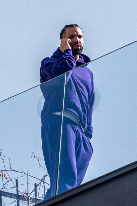 Le rappeur canado-américain Drake lors d'une longue conversation au téléphone sur un rooftop à Paris