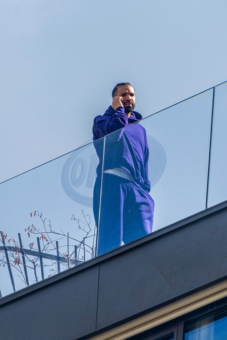 Le rappeur canado-américain Drake lors d'une longue conversation au téléphone sur un rooftop à Paris