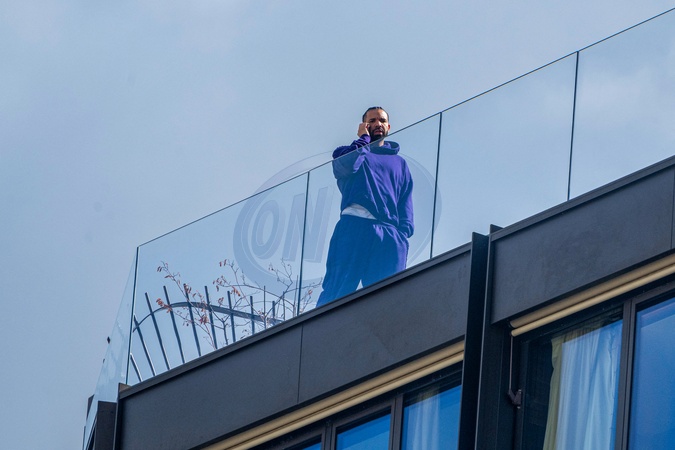 Le rappeur canado-américain Drake lors d'une longue conversation au téléphone sur un rooftop à Paris