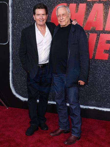 HOLLYWOOD, LOS ANGELES, CALIFORNIA, USA - SEPTEMBER 04: American actor Charlie Sheen and American film producer and the president and co-founder of Atlas Entertainment Charles Roven arrive at the Los Angeles Premiere Of Netflix's 'aka American actor Charlie Sheen' Season 1 held at the Netflix Tudum Theater on September 4, 2025 in Hollywood, Los Angeles, California, United States., Credit:Xavier Collin / Avalon