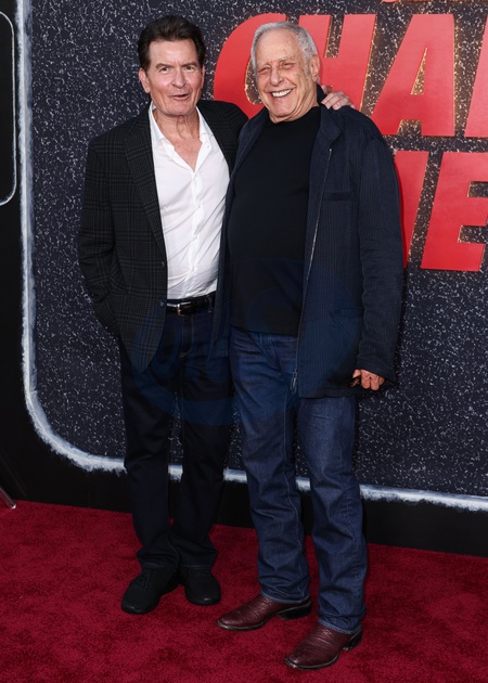 HOLLYWOOD, LOS ANGELES, CALIFORNIA, USA - SEPTEMBER 04: American actor Charlie Sheen and American film producer and the president and co-founder of Atlas Entertainment Charles Roven arrive at the Los Angeles Premiere Of Netflix's 'aka American actor Charlie Sheen' Season 1 held at the Netflix Tudum Theater on September 4, 2025 in Hollywood, Los Angeles, California, United States., Credit:Xavier Collin / Avalon