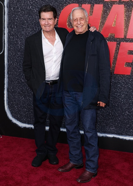 HOLLYWOOD, LOS ANGELES, CALIFORNIA, USA - SEPTEMBER 04: American actor Charlie Sheen and American film producer and the president and co-founder of Atlas Entertainment Charles Roven arrive at the Los Angeles Premiere Of Netflix's 'aka American actor Charlie Sheen' Season 1 held at the Netflix Tudum Theater on September 4, 2025 in Hollywood, Los Angeles, California, United States., Credit:Xavier Collin / Avalon