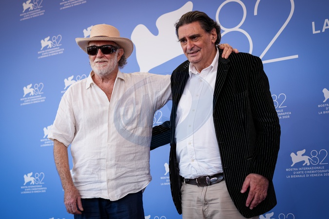 Francesco De Gregori and Stefano Pistolini attend the "Francesco De Gregori Nevergreen” photocall during the 82nd Venice International Film Festival in Venice, Italy on 05 September 2025., Credit:Stefano Costantino TTL / Avalon