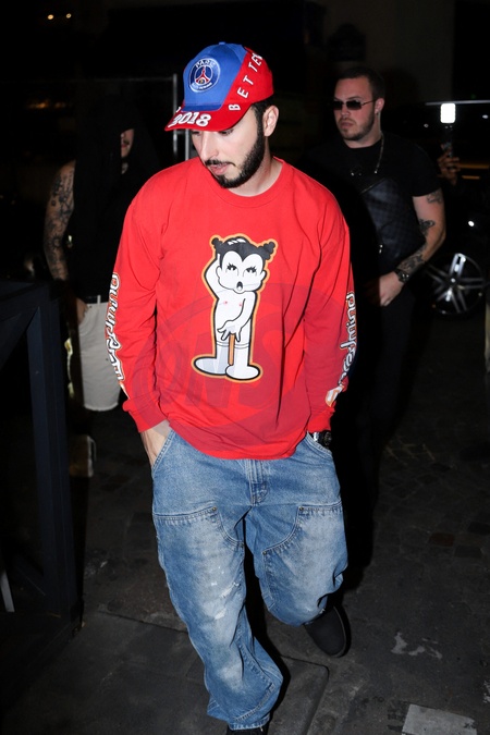 Zack Bia (Pull rouge, un Dj américain en lien avec Drake) à la sortie du restaurant italien Giusé Trattoria à Paris, France, le 5 septembre 2025. © Yoann Ouahcene/Bestimage Celebs leaving the Italian restaurant Giusé Trattoria in Paris, France, on September 5, 2025. © Yoann Ouahcene/Bestimage