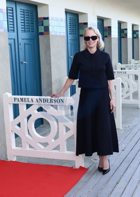 Pamela Anderson inaugure sa cabine sur les planches de Deauville lors du 51éme Festival du Cinema Américain de Deauville le 5 Septembre 2025. © Denis Guignebourg/Bestimage Pamela Anderson inaugurates her cabin on the Deauville stage during the 51st Deauville American Film Festival on September 5, 2025.