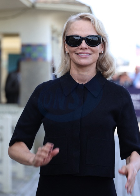 Pamela Anderson inaugure sa cabine sur les planches de Deauville lors du 51éme Festival du Cinema Américain de Deauville le 5 Septembre 2025. © Denis Guignebourg/Bestimage Pamela Anderson inaugurates her cabin on the Deauville stage during the 51st Deauville American Film Festival on September 5, 2025.