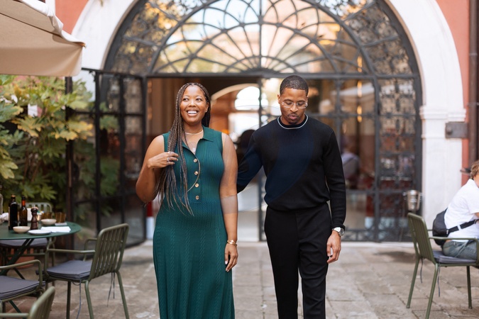 Exclusif - Prix Special - RDV avec Chris Young et l'avocate Brittany Barnett (désormais sa compagne)à l'hôtel Palazzo Experimental à Venise en marge du 82ème Festival International du Film de Venise (Mostra) le 29 août 2025. Après avoir obtenu la grâce d'Alice Johnson, en 2020, Kim Kardashian était retournée à la Maison Blanche afin de demander la clémence pour Chris Young, condamné à la prison à vie sans possibilité de libération conditionnelle pour une infraction mineure liée aux stupéfiants. Clémence accordée par Donald Trump en 2021. Après onze ans de prison, Chris Young a été relâché. Et il était à Venise pour remettre le prix à celle qui l'a libéré, saluant son travail acharné. © Tiziano da Silva / Bestimage Exclusive - For Germany call for price - Meeting with Chris Young and lawyer Brittany Barnett (now they are a couple) at the Palazzo Experimental Hotel in Venice on the sidelines of the 82nd Venice International Film Festival (Mostra) on August 29, 2025. After obtaining a pardon for Alice Johnson in 2020, Kim Kardashian returned to the White House to request clemency for Chris Young, sentenced to life in prison without the possibility of parole for a minor drug offense. Clemency was granted by Donald Trump in 2021. After eleven years in prison, Chris Young was released. And he was in Venice to present the award to the woman who freed him, praising her hard work.