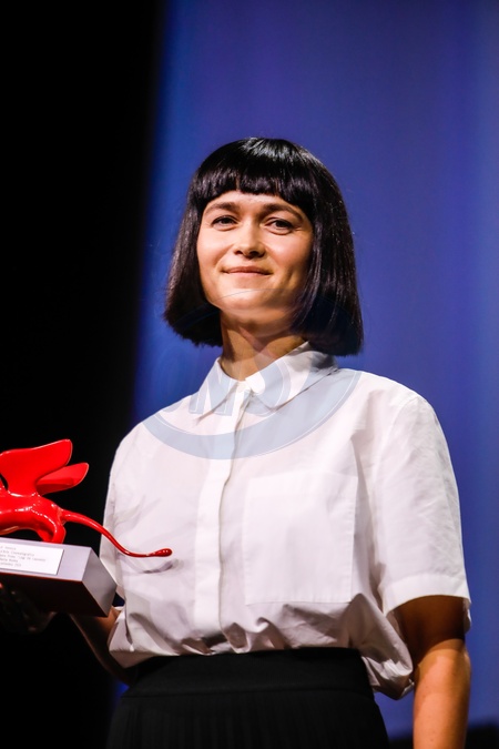 Nastia Korkia after being awarded the Luigi De Laurentis Award for Debut Film for "Short . venice, Italy 06 September 2025, Credit:Mirco Toniolo / Avalon