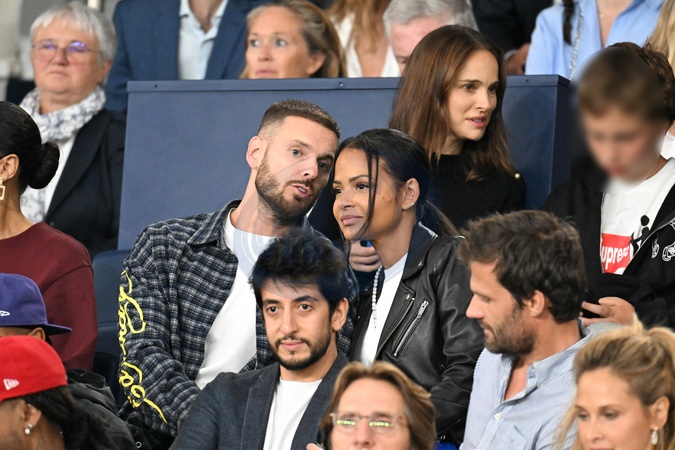Natalie Portman et son fils Aleph, Christina Milian et son mari M. Pokora (Matt Pokora), Kamel Isker, Alexis Michalik - Célébrités dans les tribunes lors du match de qualification pour la Coupe du Monde 2026 entre la France et l'Islande (2-1) au Parc des Princes à Paris le 9 septembre 2025. © Lionel Urman/Bestimage Celebrities in the stands during the 2026 World Cup qualifying match between France and Iceland (2-1) at the Parc des Princes in Paris on September 9, 2025.