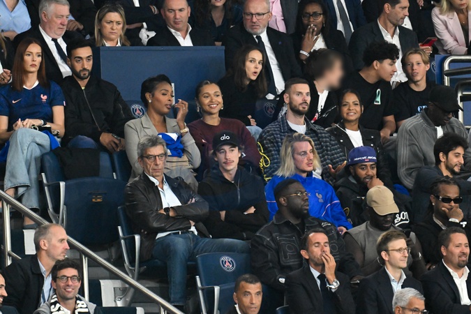 Célébrités dans les tribunes lors du match de qualification pour la Coupe du Monde 2026 entre la France et l'Islande (2-1) au Parc des Princes à Paris