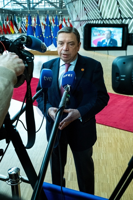 Luis PLANAS PUCHADES at the meeting of the Minister of Agriculture and Fisheries of the European Union in the European Council in Brussels in Belgium on February 24 2025. Ministers discuss "rural proofing” for policies tailored to the needs of people living and working in rural areas as well as the market situation following the invasion of Ukraine.Luis PLANAS PUCHADES a la reunion de ministre de l agriculture et de la peche de l Union Europeenne au Conseil Europeen a Bruxelles en Belgique le 24 Fevrier 2025. Les ministres discutent de la « rural proofing » pour des politiques adaptees aux besoins des populations vivant et travaillant en milieu rural et egalement de la situation du marche apres l invasion de l Ukraine., Credit:Martin Bertrand / Avalon