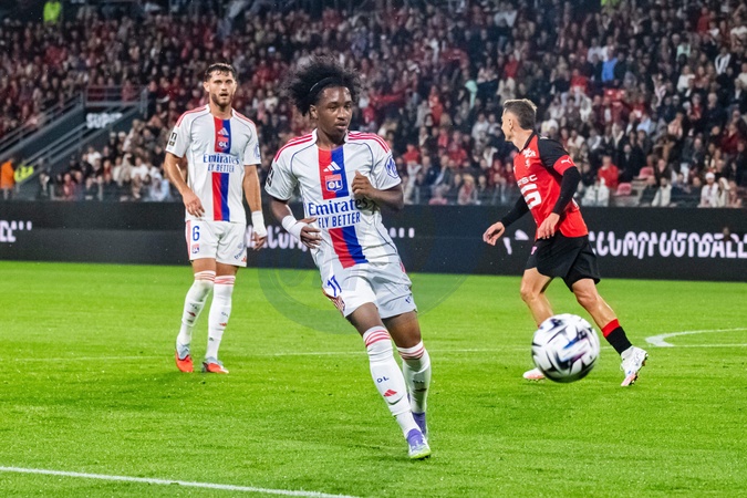 Malick Fofana (OL) - Match de Ligue 1 McDonald's "Rennes - Lyon (3-1)" au Roazhon Park, le 14 septembre 2025. McDonald's Ligue 1 match "Rennes - Lyon (3-1)" at Roazhon Park, September 14, 2025.