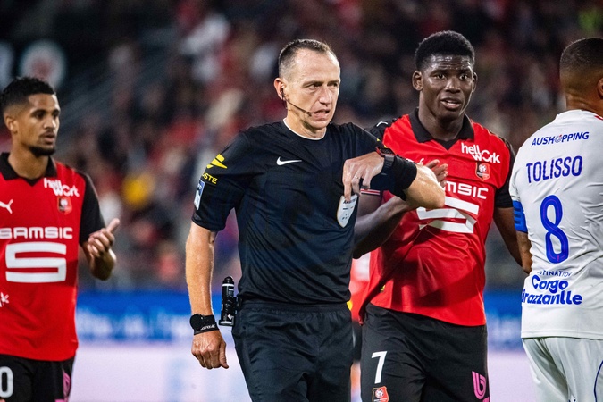 Ruddy Buquet (Arbitre central) - Match de Ligue 1 McDonald's "Rennes - Lyon (3-1)" au Roazhon Park, le 14 septembre 2025. McDonald's Ligue 1 match "Rennes - Lyon (3-1)" at Roazhon Park, September 14, 2025.