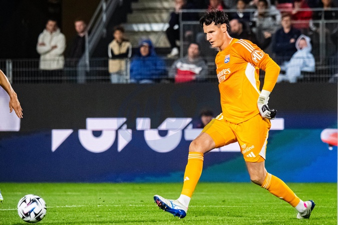 Remy Descamps (OL) - Match de Ligue 1 McDonald's "Rennes - Lyon (3-1)" au Roazhon Park, le 14 septembre 2025. McDonald's Ligue 1 match "Rennes - Lyon (3-1)" at Roazhon Park, September 14, 2025.