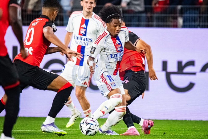 Malick Fofana (OL) - Match de Ligue 1 McDonald's "Rennes - Lyon (3-1)" au Roazhon Park, le 14 septembre 2025. McDonald's Ligue 1 match "Rennes - Lyon (3-1)" at Roazhon Park, September 14, 2025.