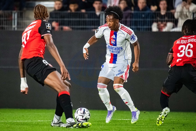 Malick Fofana (OL) - Match de Ligue 1 McDonald's "Rennes - Lyon (3-1)" au Roazhon Park, le 14 septembre 2025. McDonald's Ligue 1 match "Rennes - Lyon (3-1)" at Roazhon Park, September 14, 2025.
