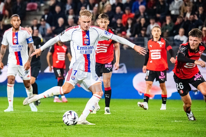 Adam Karabec (OL) - Match de Ligue 1 McDonald's "Rennes - Lyon (3-1)" au Roazhon Park, le 14 septembre 2025. McDonald's Ligue 1 match "Rennes - Lyon (3-1)" at Roazhon Park, September 14, 2025.