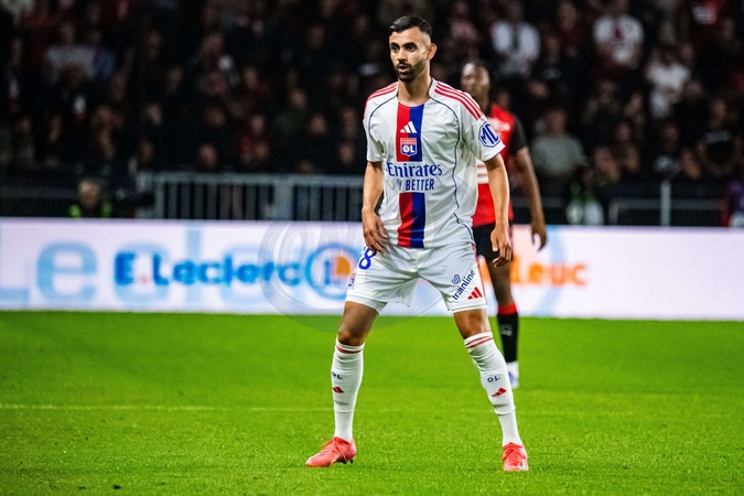 Rachid Ghezzal (OL) - Match de Ligue 1 McDonald's "Rennes - Lyon (3-1)" au Roazhon Park, le 14 septembre 2025. McDonald's Ligue 1 match "Rennes - Lyon (3-1)" at Roazhon Park, September 14, 2025.
