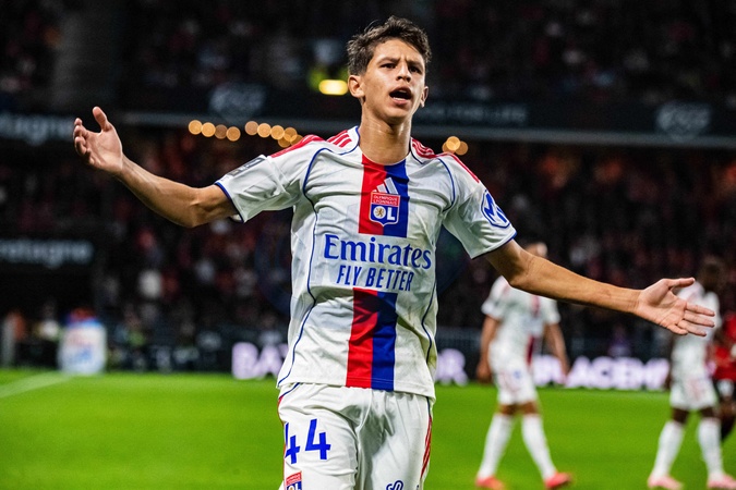 Khalis Merah (OL) - Match de Ligue 1 McDonald's "Rennes - Lyon (3-1)" au Roazhon Park, le 14 septembre 2025. McDonald's Ligue 1 match "Rennes - Lyon (3-1)" at Roazhon Park, September 14, 2025.