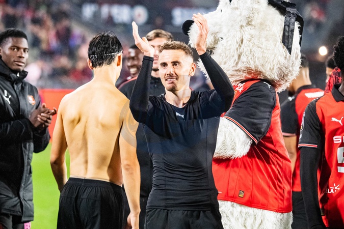Valentin Rongier (Stade Rennais) - Match de Ligue 1 McDonald's "Rennes - Lyon (3-1)" au Roazhon Park, le 14 septembre 2025. McDonald's Ligue 1 match "Rennes - Lyon (3-1)" at Roazhon Park, September 14, 2025.