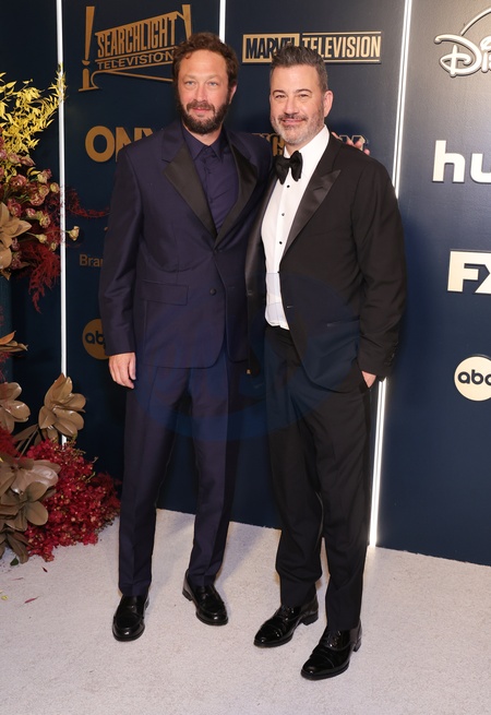 14 Septmber 2025 . Los Angeles, California - Ebon Moss-Bachrach, Jimmy Kimmel At The Walt Disney Company's Emmy Awards Celebration held at Vidiots Foundation - Vibiana in Los Angeles., Credit:Sadou Faye / Avalon
