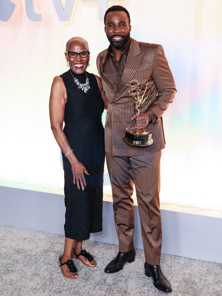 WEST HOLLYWOOD, LOS ANGELES, CALIFORNIA, USA - SEPTEMBER 14: Tramell Tillman, winner of the Outstanding Supporting Actor In A Drama Series award for 'Severance' with his mother (L) arrive at Apple TV+'s 77th Annual Primetime Emmy Awards Party held at Ysabel on September 14, 2025 in West Hollywood, Los Angeles, California, United States., Credit:Xavier Collin / Avalon