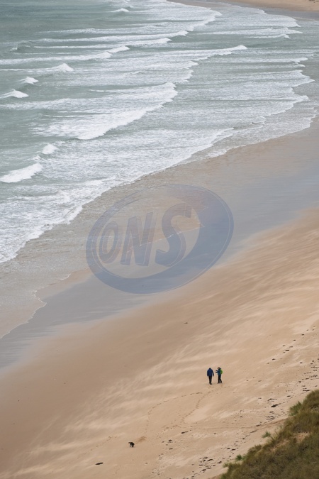 Walkers on beach at Gower peninsular. Wales, UK.