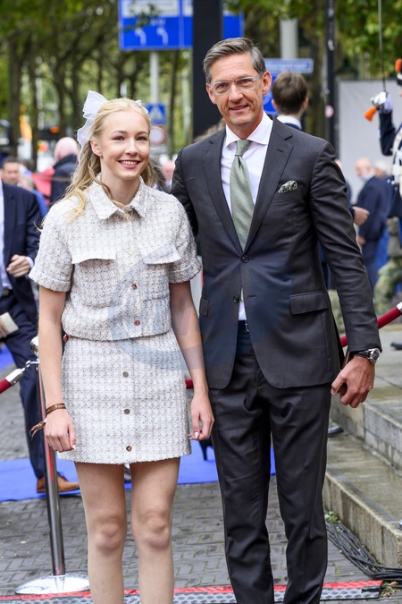 Den Haag, The Netherlands, 2025-09-16 12:31:22THE HAGUE, September 16, 2025, Royal Theatre. Politicians arrive at the Royal Theatre during Budget Day. The King will read the Speech from the Throne at the Royal Theatre to members of the Senate and House of Representatives. PHOTO: NL Beeld/Patrick van Emst. Pictured: Joost Eerdmans with his daughter., Credit:Avalon