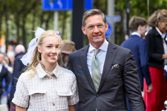 Den Haag, The Netherlands, 2025-09-16 12:31:25THE HAGUE, September 16, 2025, Royal Theatre. Politicians arrive at the Royal Theatre during Budget Day. The King will read the Speech from the Throne at the Royal Theatre to members of the Senate and House of Representatives. PHOTO: NL Beeld/Patrick van Emst. Pictured: Joost Eerdmans with his daughter., Credit:Avalon