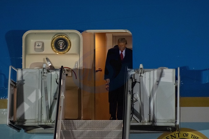 Stansted Airport, UK, 16th September 2025 – President Donald Trump exits Air Force One after landing for his second state visit to the United Kingdom., Credit:Will Colebourne / Avalon