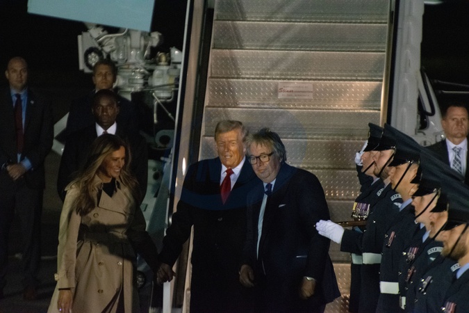 Stansted Airport, UK, 16th September 2025 – President Donald Trump exits Air Force One after landing for his second state visit to the United Kingdom., Credit:Will Colebourne / Avalon