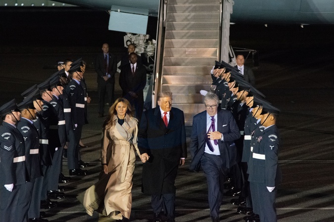 Stansted Airport, UK, 16th September 2025 – President Donald Trump exits Air Force One after landing for his second state visit to the United Kingdom., Credit:Will Colebourne / Avalon