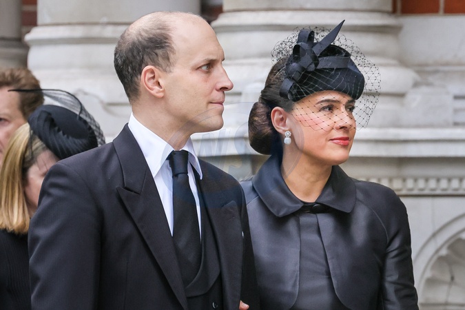 London, UK, 16th Sep 2025. Lord Frederick Windsor and Lady Windsor (Sophie Winkleman). Mourners, including members of the Royal Family, are seen arriving at Westminster Cathedral for a requiem mass, a Catholic funeral service held for the Duchess of Kent, who passed away on 4 Sep., Credit:Imageplotter / Avalon