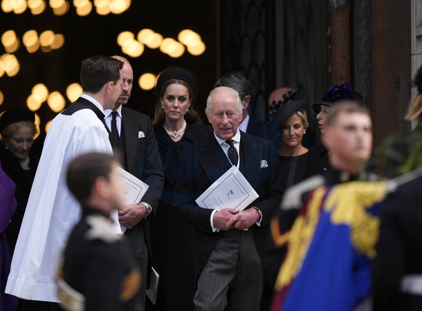 King Charles III (centre) leaves after the Requiem Mass service for the Duchess of Kent, at Westminster Cathedral, central London. Picture date: Tuesday September 16, 2025. This is the first Catholic funeral service held for a member of the royal family in modern British history. Katharine, the wife of the late Queen's cousin the Duke of Kent, converted to Catholicism in 1994., Credit:Jordan Pettitt / Avalon