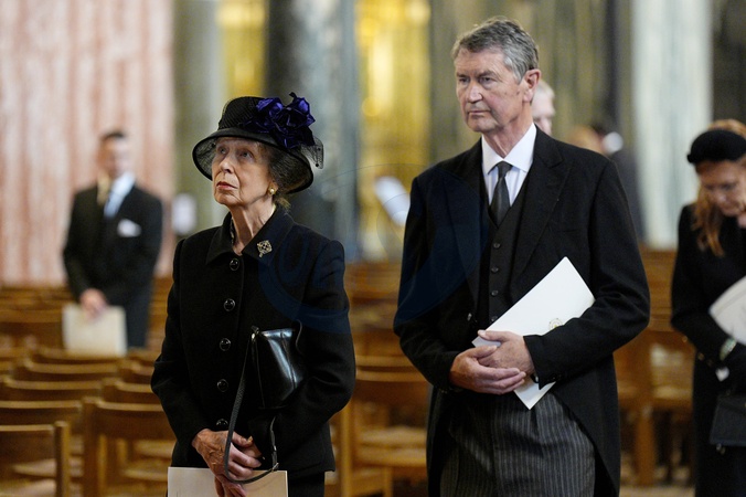 The Princess Royal and Vice Admiral Sir Timothy Laurence leave Westminster Cathedral, central London, following the Requiem Mass service for the Duchess of Kent. Picture date: Tuesday September 16, 2025. This is the first Catholic funeral service held for a member of the royal family in modern British history. Katharine, the wife of the late Queen's cousin the Duke of Kent, converted to Catholicism in 1994., Credit:Aaron Chown / Avalon