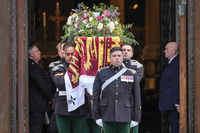 London, UK, 16th Sep 2025. The coffin is carried to the hearse. Mourners, including members of the Royal Family, are seen paying their respects as the coffin is carried out and into the hears, then departing from Westminster Cathedral after the a requiem mass, a Catholic funeral service held for the Duchess of Kent, who passed away on 4 Sep., Credit:Imageplotter / Avalon