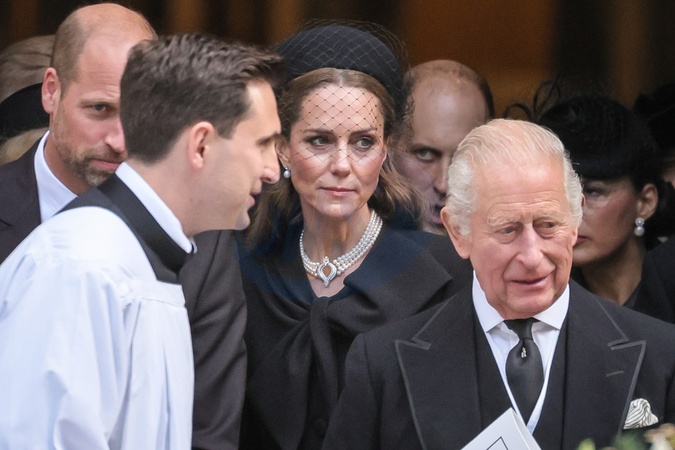 London, UK, 16th Sep 2025. King Charles, Prince William and Princess Catherine. HRH King Charles III, The Prince and Princess of Wales Prince William and Princess Catherine, and other senior members of the Royal Family. The coffin is carried to the hearse. Mourners, including members of the Royal Family, are seen paying their respects as the coffin is carried out and into the hears, then departing from Westminster Cathedral after the a requiem mass, a Catholic funeral service held for the Duchess of Kent, who passed away on 4 Sep., Credit:Imageplotter / Avalon