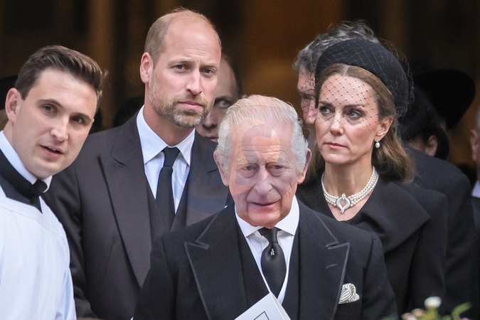 London, UK, 16th Sep 2025. HRH King Charles III, The Prince and Princess of Wales and other senior members of the Royal Family. The coffin is carried to the hearse. Mourners, including members of the Royal Family, are seen paying their respects as the coffin is carried out and into the hears, then departing from Westminster Cathedral after the a requiem mass, a Catholic funeral service held for the Duchess of Kent, who passed away on 4 Sep., Credit:Imageplotter / Avalon