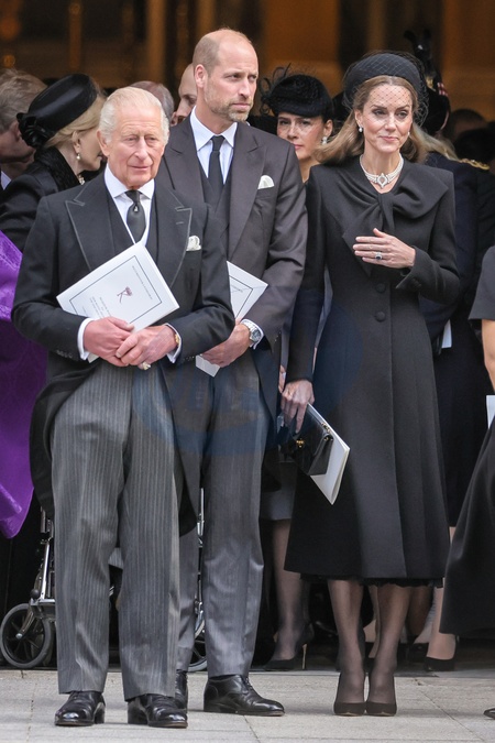 London, UK, 16th Sep 2025. HRH King Charles III, The Prince and Princess of Wales Prince William and Princess Catherine, and other senior members of the Royal Family. The coffin is carried to the hearse. Mourners, including members of the Royal Family, are seen paying their respects as the coffin is carried out and into the hears, then departing from Westminster Cathedral after the a requiem mass, a Catholic funeral service held for the Duchess of Kent, who passed away on 4 Sep., Credit:Imageplotter / Avalon