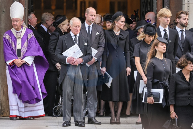 London, UK, 16th Sep 2025. HRH King Charles III, The Prince and Princess of Wales Prince William and Princess Catherine, and other senior members of the Royal Family. The coffin is carried to the hearse. Mourners, including members of the Royal Family, are seen paying their respects as the coffin is carried out and into the hears, then departing from Westminster Cathedral after the a requiem mass, a Catholic funeral service held for the Duchess of Kent, who passed away on 4 Sep., Credit:Imageplotter / Avalon