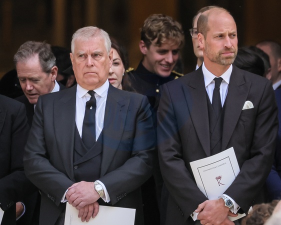 London, UK, 16th Sep 2025. HRH King Charles III, The Prince and Princess of Wales Prince William and Princess Catherine, Anne the Princess Royal, Prince Andrew The Duke and Duchess of York, Prince Michael of Kent and other senior members of the Royal Family all pay their last respects as the coffin is carried to the hearse. They then depart from Westminster Cathedral after the a requiem mass, a Catholic funeral service held for the Duchess of Kent, who passed away on 4 Sep., Credit:Imageplotter / Avalon